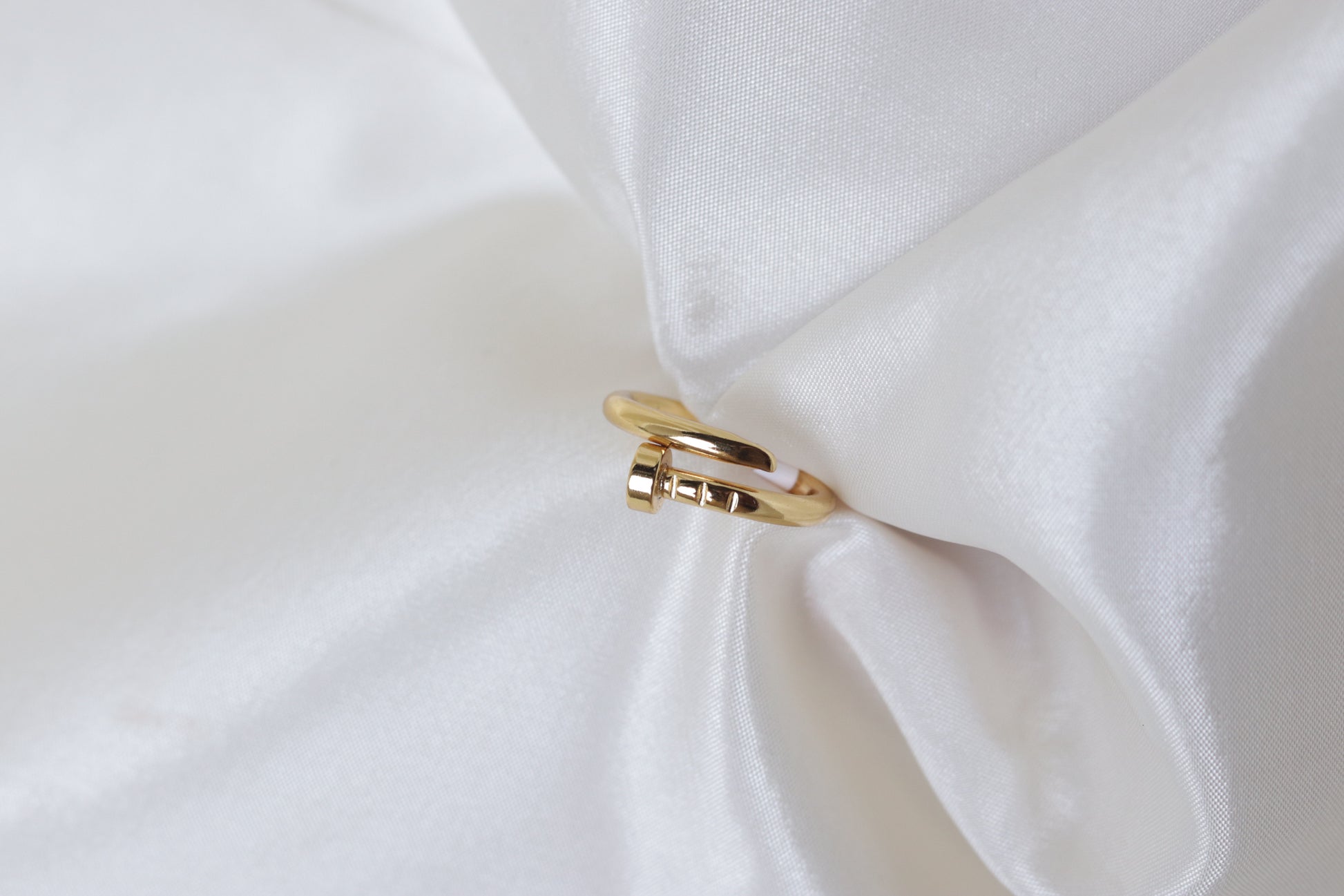 Striking in form and fearless in spirit, the Luzura's Forge Nail Ring is a sculptural tribute to strength, simplicity, and style. Inspired by industrial design and refined with architectural precision, this bold statement piece wraps the silhouette of a sleek nail around the finger — transformed into a symbol of modern luxury through radiant 18K gold plating. Crafted from high-polish, tarnish-resistant stainless steel, it delivers lasting durability without sacrificing comfort, thanks to its smooth, rounded contours and feather-light feel. Edgy yet elegant, its minimalist structure makes it equally powerful worn solo or stacked with other rings. Hypoallergenic and skin-safe, the Forge Ring transitions effortlessly from casual days to elevated nights, embodying Luzura’s signature craftsmanship and unapologetic modernity. Designed for the woman who wears her confidence like gold.